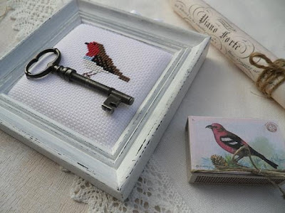 Zapieszka z ptaszkiem cudna i pomysłowa, stary kluczyk rewelacyjnie prezentuje się w ramce z hafcikiem !!!